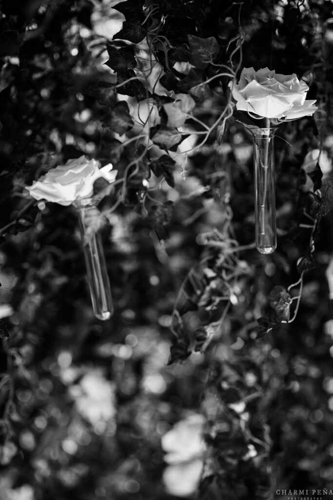 @AteierAzure: For the reception decor, I love the contemporary structure with the driftwood and roses, it is so beautiful. Is this something that was a strong vision from the bride and groom or was it pitched by the wedding team?